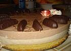 A tak wygląda w moim wykonaniu. Ciasto jest naprawdę dobre, lekkie i łatwe w wykonaniu. Nie byłabym sobą, gdybym czegoś nie zmodyfikowała. I tak do białej masy dodałam saszetkę cappuccino brady, a do ciemnej - zamiast kawy rozpuszczalnej - czekoladowy i ajerkoniakowy sos do lodów i deserów. Całość udekorowałam galaretkami w czekoladzie.