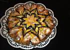 A oto moja pierwsza gwiazda. Nadziewałam tym co akurat miałam w lodówce czyli pierwszy i trzeci placek posmarowany dżemem pomarańczowym, drugi -białym serem . Następna próba będzie z makiem. Super przepis.
