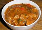 Gdy wszystko jest miękkie, dodajemy przecier pomidorowy, zagęszczamy wodą rozmieszaną z mąką, dosmaczamy i na koniec garść zielonej pietruszki.