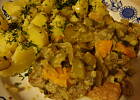 Zrobiłam na dzisiejszy obiad z łopatki. Wyszło pysznie, sos się zagęścił dzięki obtoczeniu w mące mięsa i nie trzeba było dodatkowo podbijać. Super smaczek daje dodatek ogórków. Podałam z ziemniakami tłuczonymi i surówką z kapusty kiszonej.