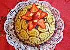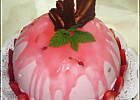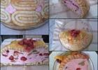 Wersja truskawkowa bez rolady. Na spód dałam dwa plastry biszkoptu, przełożone dżemem morelowym.