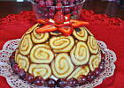 Rolada jest mała, grubość ciasta to ok 1 cm. Roladę pokroić w cienkie plastry, wyłożyć miskę (kilka plastrów zostawić na spód).
