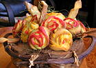 Pierwszy raz zrobiłam różyczki na 4 urodzinki córeczki, w sobotę piekłam (hehe resztę robiła córka z niewielką moją pomocą) na jej 6 urodzinki, odrobinę zmodyfikowałam przepis, a mianowicie, sklejone kółeczka przygotowane do zawiniecia smaruję twardą marmoladą, całe kółeczka, ale cieniutką warstwą (bo mogą być ciasteczka za słodkie), wtedy po zawinięciu i przekrojeniu pięknie marmoladka wystaje między płatkami. Ciasteczka zawsze robią ogromne wrażenie na gościach :) Jak zawsze pyszne !!! ^^