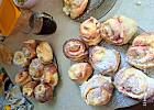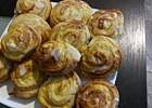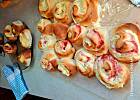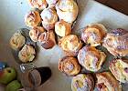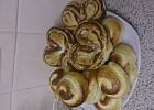 Wyrośnięte ciasto wykładamy na stolnicę, zagniatamy i rozwałkowujemy na prostokąt o grubości ok. 0,5 - 1cm, smarujemy masą serową i zwijamy wzdłuż szerszego boku. Kroimy plastry ok. 2 - 3 cm.