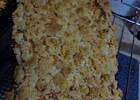 Wyrośnięte ciasto przełożyć do formy, posypać kruszonką. Piec 45 min. w 180 stopniach.