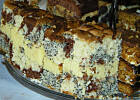Po całkowitym wystygnięciu przekrawamy biszkopt na pół i smarujemy ciasto 2/3 konfitury porzeczkowej. Następnie wykładamy na to 2/3 masy karpatkowej i przykrywamy drugą połową biszkopta. Wierzch ciasta smarujemy pozostałą częścią konfitury i pozostałą częścią kremu.