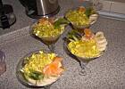 Mirynko-na przemian,tzn,warstwami.Galaretkę wykładać do pucharków dopiero jak stężeję lekko.To chyba się robi trochę na oko:)