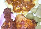 Do tego podsmażyłam kilka różyczek brokułu na patelni, wrzuciłam torebkę ugotowanego ryżu i kilka kawałków sera lazur. I z tym podałam kurczaka! Obiad był rewelacyjny:) Dzięki za pomysł!!!