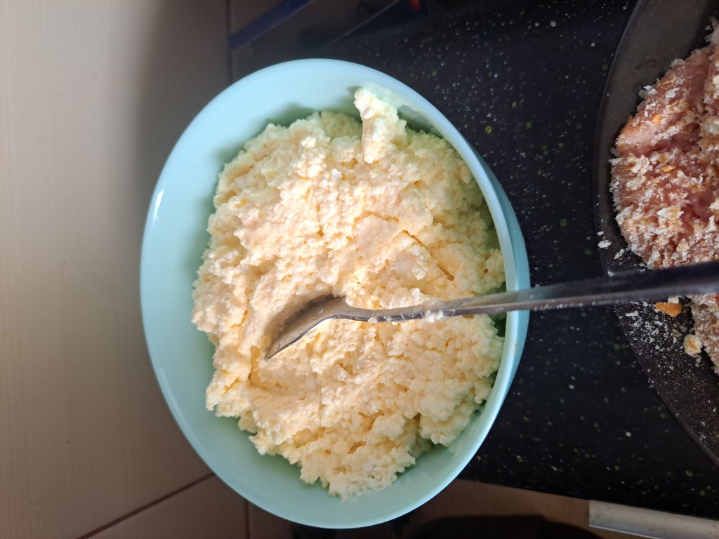 ja tez je dzisiaj zrobilam ale z seren.Tylko nie wiem dla czego ser wyszedl mi na wierzch.Mialam problem tez ze zlepianiem do ciasto bylo dosyc rzadkie.Ale w smaku pycha.