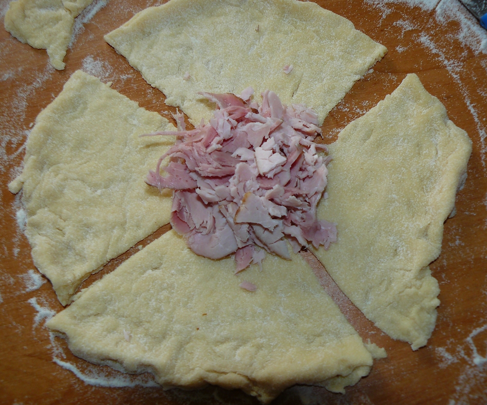 Na środku układamy pieczarki z cebulą oraz wędlinę.