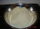 Ciasto wymieszac widelcem do polaczenia sie wszystkich skladniow i delikatnie kilka razy zagniesc ciasto.
