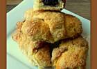 4) Nakładać marmoladę (mało, żeby się rogaliki nie rozwijały) i zwijać rogaliki.