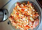 Po 40 minutach duszenia, na tej samej patelni, na dużym ogniu smażymy ok. 5 - 7 min. pokrojoną paprykę - przekładamy do rondla - i mieszamy.