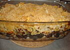 A tutaj połączenie moich trzech ulubionych warzywek: fasolki, brokuła i kalafiora. Każdą warstwę smarowałam śmietaną z przyprawami, posypywałam bułką tartą i żółtym serem.