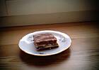 Mąkę wymieszać w oddzielnej miseczce z kakao i proszkiem do pieczenia. Dodawać ją do masy po 1 łyżce, mieszając ręcznie (pod żadnym pozorem przy pomocy miksera!!!). Ciasto podzielić na 2 równe części. Każdą z nich upiec w blaszce o wymiarach 25x36 cm, w temperaturze 180 stopni. Po 15 minutach powinny być gotowe. Uwaga! Proszę nie przerażać się,że ciasto wyszło cienkie! W tym właśnie tkwi jego urok :)