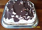 Na pierwszy biszkopt nałożyć połowę masy. Ładnie wyrównać i rozsmarować na niej połowę glazury. Odstawić w zimne miejsce do czasu, aż zastygnie i stwardnieje. Wówczas nałożyć na nią pozostałą masę i przykryć drugim biszkoptem. Polać pozostałą glazurą.