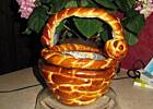 Do przygotowania koszyka potrzebna będzie miska żaroodporna owinięta folią aluminiową. Robimy wałeczki z ciasta i zaplatamy tak jak plecie się kosz wiklinowy.