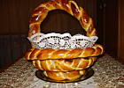 Piękny koszyczek! Oczywiście w domu, gdy okazało się, że drożdże są to zabraółam się do roboty ;) Nooo... co prawda jak na pierwszy raz wyszedł nawet nawet, ale na kolejny raz już wiem, co zrobiłam źle podczas "kształtowania" koszyka. Na gościach i tak zrobił wrażenie "mój" orginalny pomysł ;] W dzień pieczenia trzebabyło koszyka pilnować bo w całym domu nieziemsko pachniało to ciasto. Dziękuję za przepis i pomysł. A mój koszyk wyglądał tak: