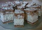 Ciasto biszkoptowe: oddzielić żółtka od białek. Ubić białka na sztywną pianę, pod koniec ubijania dodać cukier i po jednym żółtku, wreszcie delikatnie wymieszać z mąką i proszkiem. Upiec na złoty kolor.