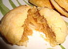 Zlepić, posmarować wierzch pozostałym białkiem.Ułożyć na blasze wyłożonej papierem do pieczenia. Piec bezpośrednio po zlepieniu w temp.180 st.C przez ok.20 min.żeby pierożki się zarumieniły.