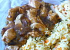 Mąkę ziemniaczaną rozrobić z kilkoma łyżkami zimnej wody, zaprawić mięso , chwilę jeszcze dusić , mieszając.