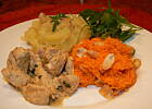 Kurczaka kroimy w kostkę, doprawiamy solą i pieprzem. Smażymy na oliwie, po paru minutach dodajemy przyprawę "Gyros". Oliwy używam dość oszczędnie i czasem podlewam dodatkowo kurczaka wodą. Usmażonego kurczaka zalewamy niezbyt dużą ilością śmietany- ok. 2 łyżek- chwilę jeszcze trzymamy na małym ogniu, mieszając.