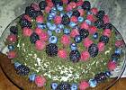 Ciasto zrobione. Jako mój tort urodzinowy. Z dodatkiem limetki, nasączone ponczem cytrynowo-limetkowym, z kremem limetkowym (bita śmietana, serek kremowy, skórka z 2 limetek i sok z nich plus sok z cytryny). Udekorowane owocami leśnymi.