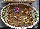 Czy może mi ktoś poradzić, jak najładniej i jak "najwielkanocniej" ozdobić ten mazurek samymi orzechami, bez polewy?