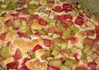 Ciasto się piecze. Nie pierwszy raz już, Przepis jest kultowy. Robię zwykle z truskawkami i rabarbarem. Fajnie pasuje do imprezy przy grilu takie sezonowe ciacho. Mnaim...