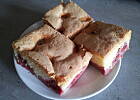 Szybciutkie i przepyszne ciacho, byly juz rozne owocowe wersje.Dzisiaj z wisniami przywiezionymi z Polski.Na nas dwoje robie z polowy porcji.Dzieki.