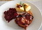 Pyszna karkówka, keczupy różne, od siebie: ćwiartki plastrów ananasa bo zalegał - 1na warstwa zamiast cebuli. Polecam chef