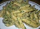 Wczoraj zrobiłam to danie w nieco innej wersji-szpinak w brykietach rozmroziłam na patelni, podsmażyłam na maśle,dodałam pokruszoną całą kostkę fety i mieszałam aż ser się rozpuści,dodałam czosnek i sporo pieprzu ale nie soliłam gdyż feta sama w sobie jest słona.Dodałam wcześniej podsmażone kawałki kurczaka i wszystko wymieszałam z makaronem.Penne do takich dań chyba najlepiej się nadaje bo sos w czasie mieszania fajnie wypełnia rurki.