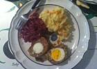 Mięso przekładamy do miski, dodajemy namoczoną w mleku lub wodzie bułkę i pozostałe składniki (oprócz jajek). Mięso przygotować jak na kotlety mielone. Musi ono dać złączyć się w roladę, dlatego jeżeli będzie ono za luźne dodać 2 łyżki bułki tartej, albo jeszcze połówkę bułki namoczonej w wodzie. Jeżeli ktoś lubi w śroku zawinąć 2 (nawet 3) jajka. Taką roladę wkładamy najlepiej do foremki keksowej, wyłożonej obficie papierem (tak, żeby mięso było otulone papierem). Piec nastawiamy na 160-170 st. i pieczemy do uzyskania delikatnej, złotej skorupki.