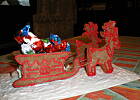 Zapodobały mi się te Wasze domeczki, więc i ja postanowiłam spróbować swych sił - w życiu jeszcze czegoś takiego nie piekłam...Dziś w ramach rozgrzewki powstały sanki...i ich "napęd", czyli zaprzęg Św. Mikołaja