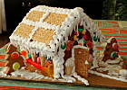 A oto mój skromniutki domek... Przepis rewelacyjny! Pierwszy raz w zyciu robilam lukier (po prostu go nie lubie) ale wyszedl bez problemow. Sklejanie domku wymaga troche sprytu, bo karmel strasznie szybko zastyga, ale trud sie oplaca. Dziekuje za przepis i polecam niezdecydowanym!