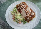 Smaczniutkie i bezgrzeszne;) Bardzo mi smakowało! Użyłam tortilii pełnozirnistych, w środek wpakowałam korniszona, paprykę, pomidory i sałatę (no i mięso oczywiście). Super! Zrobiłam fotkę, ale przed chwilą przez przypadek ją usunęłam, 30 innych zresztą też... Ach.Chyba pora iść do łóżka:)) Pozdrawiam!
