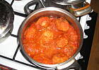 Dawno temu robiłam coś podobnegi i to była porażka - więc miałam pewien uraz do tego dania. No ale nabrałam odwagi i zrobiłam - i okazały się przepyszne! Moje małe modyfikacje - surowe pulpety obtoczyłam w mące, co pozwoliło mi zagęścić sos, a do sosu dosypałam resztkę Fixa do spaghetti napoli, bo mi wpadl w ręce:) Ryż troszkę obgotowałam, bałam się dodawać surowego. Ale reszta przepisu - bez zmian, i naprawdę bardzo smaczne.
