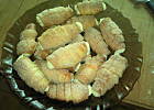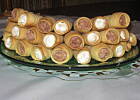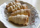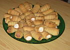 Zrobiłam i ja, upiekły się bardzo ładnie. Część nadziałam bitą śmietaną (kremówka + zagęstnik + twarożek "Mój ulubiony" made in Wieluń + łyżka cukru pudru). Nadziewałam szprycą do tortów i dobrze szło. Do pozostałych rurek przygotowałam krem budyniowy jak do napoleonki (mleko, cukier, żółtka, mąka) i tu zaczęły się schody. Za gęste to było do szprycy, łyżeczką się nie dało.