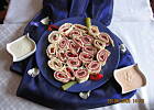 zrobiłam z szynką szwarcwaldzką i łososiem;) nawet najbardziej wybredny szwagier pożarł kilka;) bardzo dobre. dziękuję za przepis;)