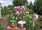 Płatki róży jak i pozostałe składniki dzielimy po na dwa słoiczki: najpierw płatki, cukier , kwasek cytrynowy i woda. Wlewajac wode lekko potrząsamy słoiczkami aby woda objęła wsad tylko go przykrywając.