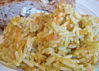Olej (ok. dwie łyżki) podgrzać na patelni, wsypać ryż i smażyć około 5 minut, mieszając.Gdy ryż ładnie wchłonie olej, dodać bulion i mieszać.Gdy bulion bedzie juz wessany przez ryż, dodawać stopniowo gorącą wodę mieszając tak długo,aż uznamy,że ryż nie jest surowy.Dodać curry, sól i pieprz (według uznania).