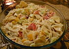Chcę zrobić tą sałatkę na sobotnie imieniny, Małgosiu czy próbowałaś dawać do niej filet z kurczaka albo szynkę? Czy raczej lepsze są same warzywa i makaron