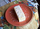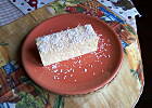 Moje dzieło - bez spodu i polewy, z posypką i kolorkiem bananowym (następnym razem poszukam budyniu kokosowego):