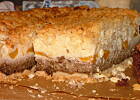 Sernik wyszedł bardzo puszysty, idealnie słodki, bardzo wysoki, czuć masę orzeczową, rozpływa się w ustach. Proponuję na dolną rastwę kruchego ciasta zużyć więcej jak połowę. A na kruszonkę i tak zawsze starczy:) Polecam, na pewno się nie powstydze przed rodziną przy stole :)