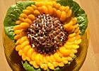 Bardzo efektowna przystawka,na stole robi wrażenie.Pierś w przyprawie ''Złocistej Kamis"usmażyłam,wystudzoną wymieszałam z prażonymi pestkami słonecznika.Sos śmietanowo-jogurtowo -majonezowy.Rodzynki moczyłam przez noc w winie.Mandarynek dwie warstwy.Nie zdążyłam zrobić zdjęcia ale następnym razem zrobię bo taki z pewnością będzie.Całośc na przezroczystym talerzu na liściach sałaty.Polecam!!!
