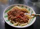 Po wyłożeniu na talerz makaronu i polaniu sosem posypujemy calosc startym serem.