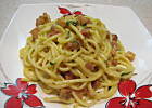 Wspaniala.Nie przepadam za makaronem( stoi mi w gardle) jezeli juz to spaghetti "3" bo "5" juz nie jest tak dobra.Zrobilam carbonare dzisiaj na obiad i stwierdzilam, ze jest pyszna.Luby zachwycony, bo On wszystko co co z kluskami uwielbia.
