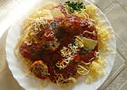 Sycące i bardzo pomidorowe spaghetti z indyczymi klopsikami z dodatkiem papryczki chili świetnie rozgrzewa w jesienne dni.