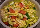Ta surówka idealnie pasuje do ciężkich mięs oraz dań grilowanych. Zamiast pekinki można użyć sałaty lodowej, a do składników dodać czerwoną paprykę i ser feta. Ostrości nadamy jej zastąpując pora cebulą.