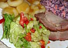 Ja również skorzystałam z tego przepisu. Piekłam karczek i łopatkę wieprzową. Łopatkę po wyjęciu z zalewy obwiązałam nitką.Podałam na ciepło z kluskami śląskimi i z sosikiem (ten co został z pieczenia zagęściłam mąką). Mięsko przepyszne. Przepis w sumie prosty a rewelacyjny.